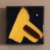 This is an original abstract painting on a 6x6" canvas with acrylic paint and a hard, clear resin coating. The background is a really dark green and the brush strokes are metallic gold and dark brown. Please don't hesitate to contact me if you have any questions.
