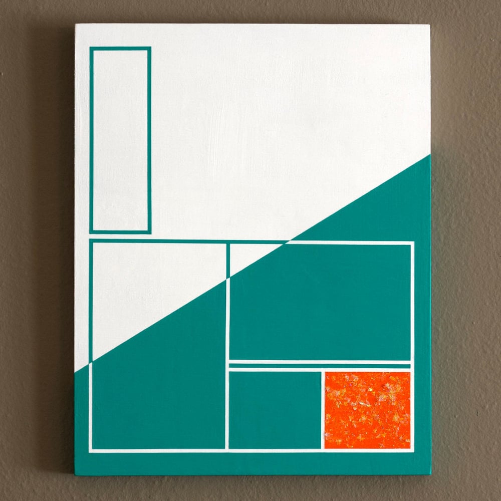 This is an original abstract painting (titled "Wallflower #28") done on a 11x14" panel board with acrylic paint and mediums. Here is a breakdown of the colors used:
