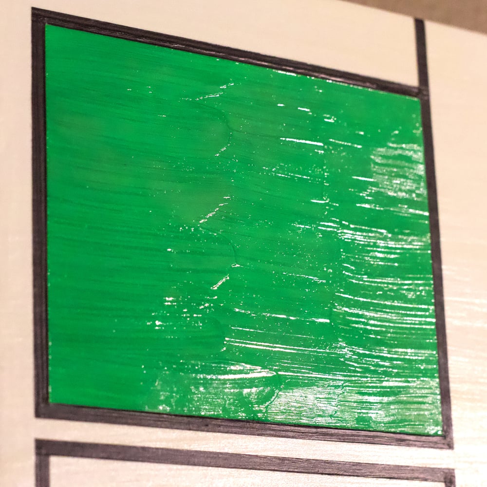 - lightest color: off-white (titanium white w/ glow-in-the-dark paint overlay)